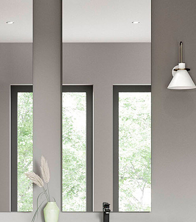 Modern country house modules look cool and cozy at the same time in a warm shade of grey. Beautiful highlights: The flexible and airy Sign Emotion railing system, in which all elements are flexibly movable and can be attached or detached at any point along the railing. An individual look in combination with elegant mirrors!