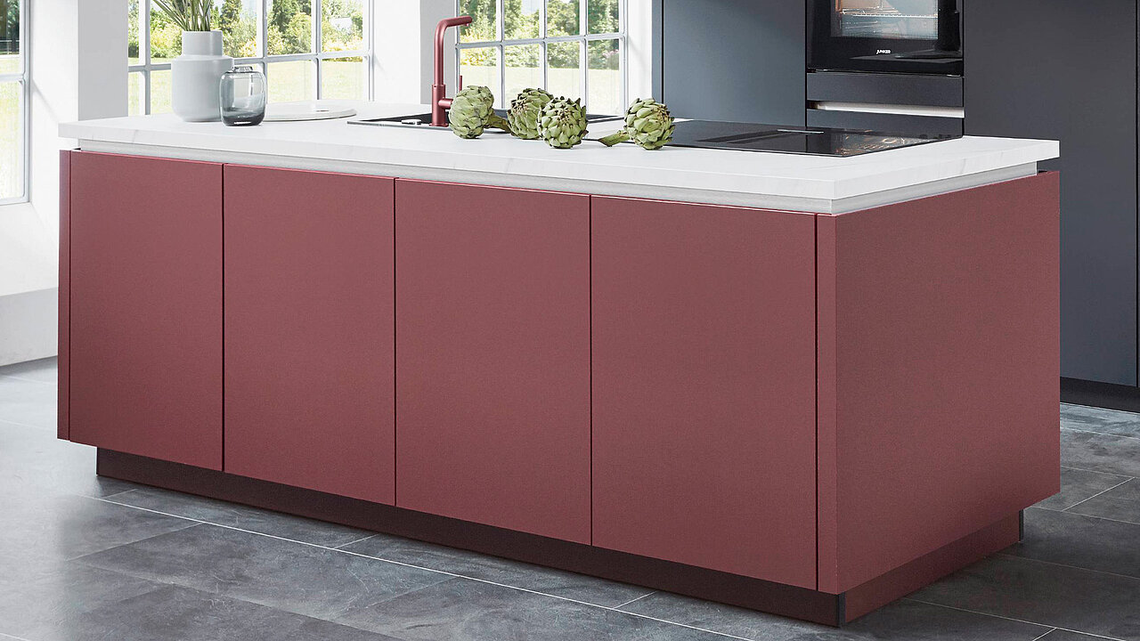 A shining example of an expressive eat-in kitchen. The rust-red color scheme in combination with graphite black creates a lively atmosphere and gives your kitchen personality and a creative touch.