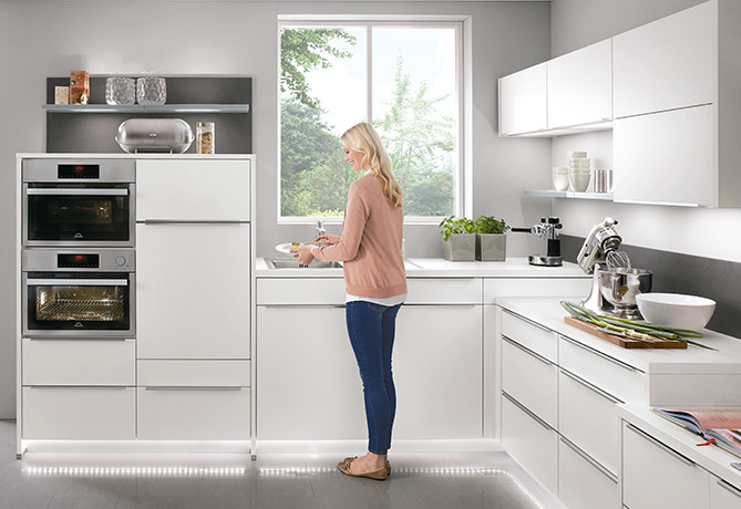 Who wouldn’t want one: a kitchen that makes the daily work routine as comfortable as possible and which uses the latest state-of-the-art technology? Here you will find everything you need to simplify your work in the kitchen while taking it easy on your back. Important here: This kitchen was essentially designed in accordance with ergonomic principles. Among these are: minimising legwork and adapting the working heights to the kitchen users as well as the installation of household appliances at accessible heights. Your speciality retailer would be glad to advise you.